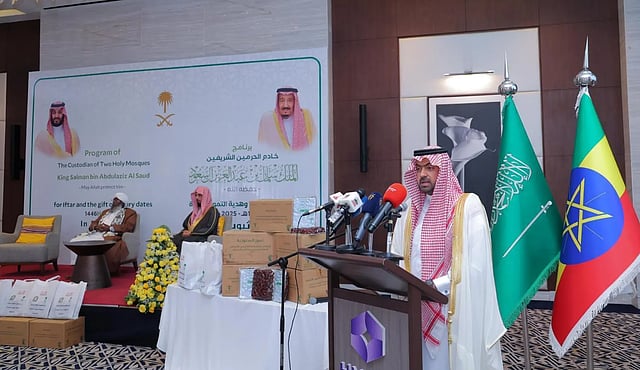 The Ministry of Islamic Affairs, Dawah and Guidance's Religious Attaché in the Republic of Ethiopia held an official ceremony to mark the launch of the Custodian of the Two Holy Mosques' iftar and date distribution programs.