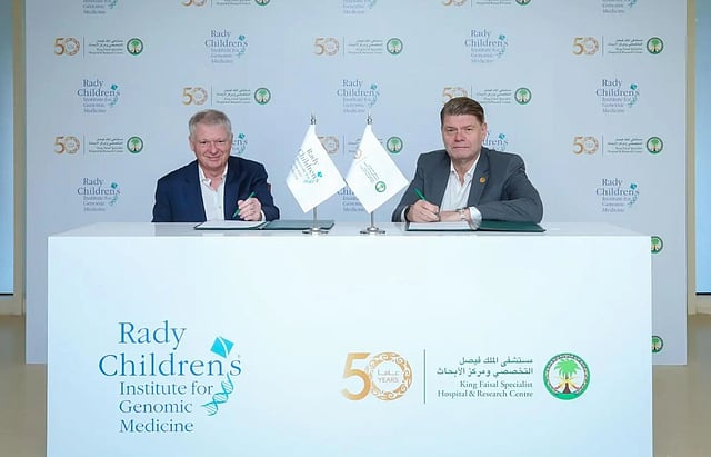 King Faisal Specialist Hospital and Research Center (KFSHRC) has signed a partnership with the Rady Children’s Institute for Genomic Medicine (RCIGM) in the United States to collaborate on implementing RCIGM’s genome-based newborn screening platform enabling early detection of more than 500 treatable and preventable genetic diseases, helping protect children from serious complications and ensuring timely medical intervention.