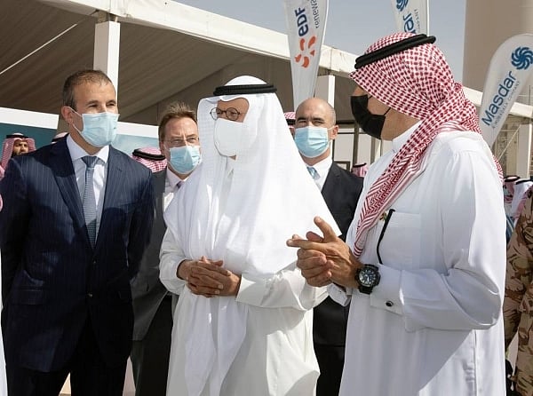 Minister of Energy Prince Abdulaziz Bin Salman; Al-Jouf Governor Prince Faisal Bin Nawaf; French Ambassador Ludovic Pouille; Danish Ambassador Ole Mosby; Bruno Bensasson; EDF group senior executive vice-president renewable energies and Fawaz Al Muharrami; acting executive director; clean energy; Masdar visited the Dumat Al Jandal wind farm construction site; for a site visit in order to mark the completion of 50 percent of the project.