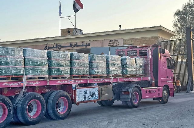 Six Saudi Relief Trucks from KSrelief Enter Gaza Strip with Food Aid M. A. Farag