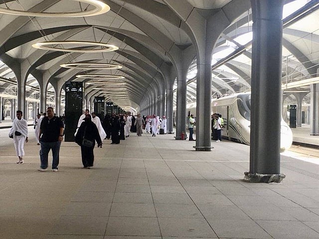 Al-Haramain Express train launched the first pilgrims' voyage with more than 170 pilgrims from different nationalities heading for Al-Rusaifa station in Makkah.