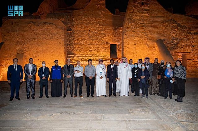 A delegation of participants in the meetings of the Arab States Broadcasting Union (ASBU) paid a visit to the historic Diriyah, Tarif quarter and archaeological sites in the governorate, accompanied by a number of officials from the Saudi Broadcasting Authority (SBA).