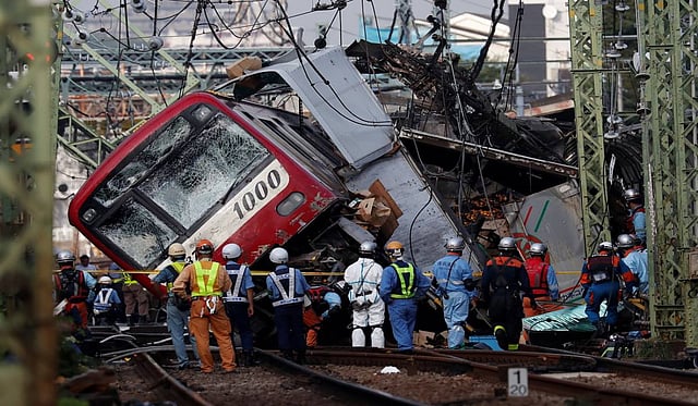 The accident, which halted trains stopped on the commuter link run by Keikyu Corp, took place near a station used by more than 19,000 people every day, the train operator said. There was no word on when services might resume.