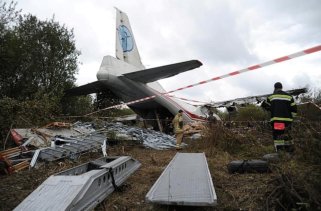 At least four crew were killed on Friday when a Ukrainian Antonov-12 cargo airplane made an emergency landing near the western airport of Lviv after disappearing from radar, officials said.