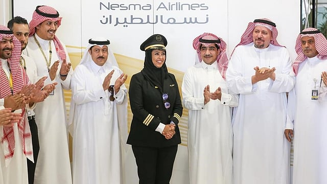 Nesma Airlines announced earlier thatit was accepting applicants to work as commercial co-pilots; more than 57applicants applied, including two females in the "new pilots" program.