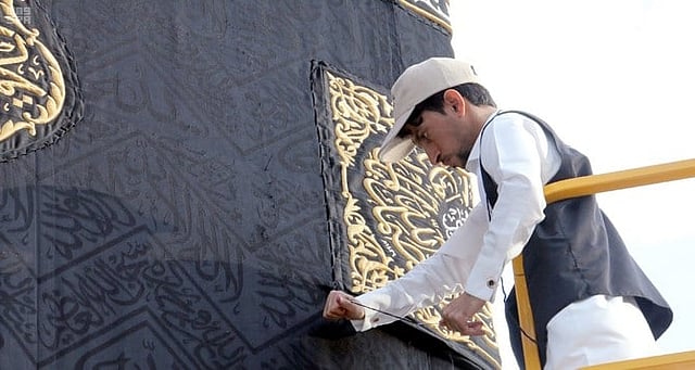Every year, the gatekeepers of the Kaaba carry a delicate, precise task; to change the silky black cloth embroidered with gold draped over the holy structure.