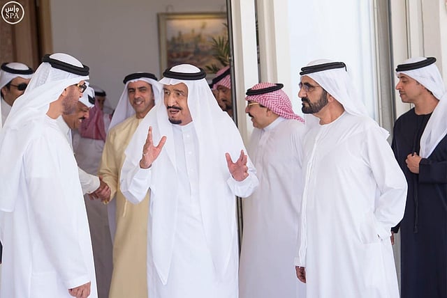 The Custodian of the Two Holy Mosques King Salman bin Abdulaziz Al Saud met at the Royal Court at Mina Palace here today with Sheikh Mohammed bin Zayed Al Nahyan, Crown Prince of Abu Dhabi and Deputy Supreme Commander of the Armed Forces of the United Arab Emirates, in the presence of His Royal Highness Prince Mohammad bin Salman bin Abdulaziz, the Crown Prince, Deputy Prime Minister and Minister of Defense.