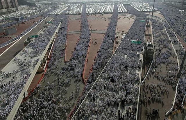 The rituals include throwing pebbles (Jamarat), circumambulation (Tawaf) and walking quickly between Safa and Marwa at the Grand Holy Mosque, shaving or cutting hair, and slaughtering sacrifices.