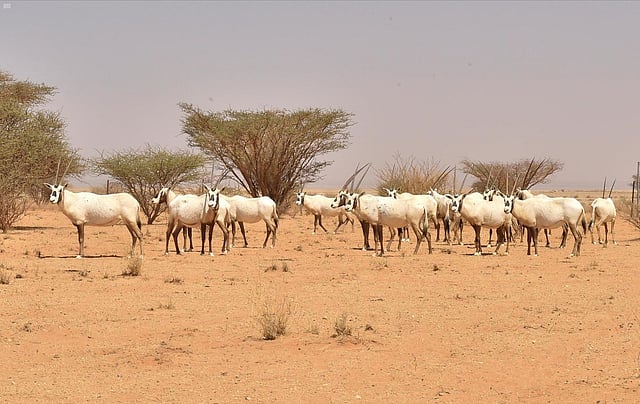 During the event, wild animals including 22 Arabian oryx; 10 reem antelopes, and 5 human antelopes; also were released into the sanctuary as part of a national program; to reintroduce and resettle endangered species; in protected areas of the Kingdom.