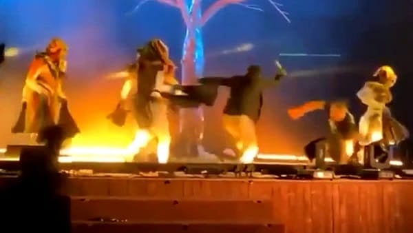 He ran onto the stage with a sharp weapon and attacked two men and a woman performer during a play in the Saudi capital, in the first of such incident since the Kingdom opened its doors for entertainment. He also stabbed a security guard, SPA reported.