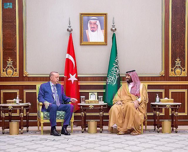 Saudi Arabia Crown Prince Mohammed bin Salman bin Abdulaziz, Deputy Prime Minister and Minister of Defense, held this evening at Al-Salam Palace a meeting with President Recep Tayyip Erdogan of the Republic of Turkey.