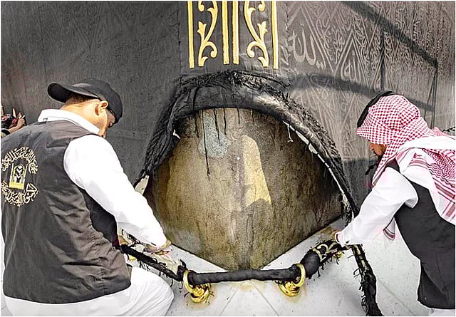 The Kiswa is decorated with Quranic verses embroidered onto the cloth with 120 kilograms of 21-karat gold thread and 100 kilograms of silver thread. The current Kiswa was installed at the Kaaba during the new Islamic year of Muharram 1, 1444, which coincided with July 30 in the Gregorian calendar.