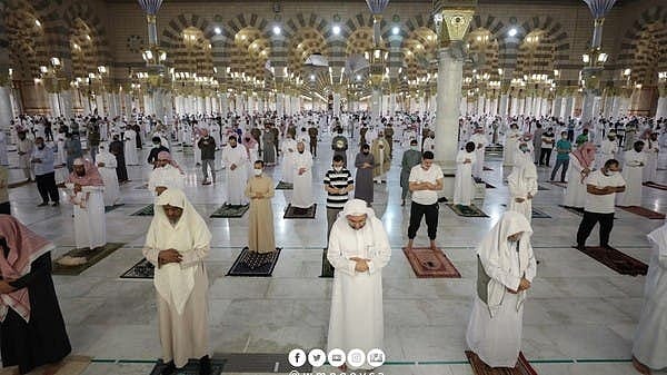 The Prophet's Mosque in Media reopened with a limit of 40 percent capacity on Sunday morning with dozens of believers gathering to offer congregational prayers.