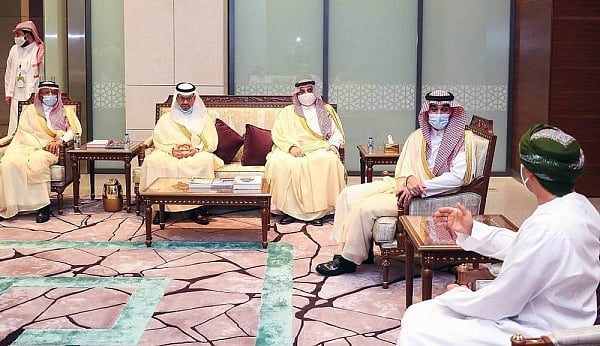 At Muscat International Airport, Chairman of the Omani Olympic Committee Khalid Al Busaidi; Prince Fahd Bin Musaed, vice president of the Saudi Arabian Olympic Committee; and Saudi Ambassador to Oman Eid Bin Mohammed Al-Thaqafi welcomed the Minister of Sports.