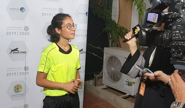 Saudi Sham Al-Ghamdi has achieved excellence in the field ofrefereeing women's matches in the teams' league in Jeddah, which started lastFriday, October 4, to eliminate the old impression that football is a male gameonly, prove her competence, and achieve her ambition.