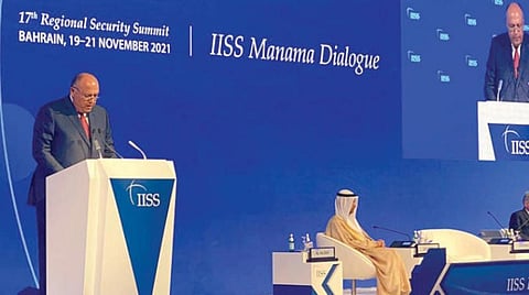 Shoukry said during his participation at the fourth Plenary Session entitled "Changing Multilateralism and Regional Security" of the IISS Manama Dialogue that the world is facing an escalation in the risks associated with cross-border terrorism, which aims to destroy societies and demolish the concepts of the national state.