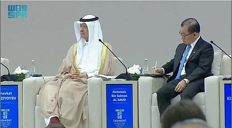Minister of Energy Prince Abdulaziz bin Salman bin Abdulaziz participated in the main panel discussion of the Third Tashkent International Investment Forum today in the presence of President of the Republic of Uzbekistan Shavkat Mirziyoyev.