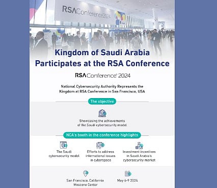 The Kingdom of Saudi Arabia, represented by the National Cybersecurity Authority (NCA), participates in the RSA Conference 2024 (RSAC2024) in San Francisco, USA, from 6-9 May, 2024, an event featuring leading global cybersecurity experts, decision-makers, and cybersecurity specialists.
