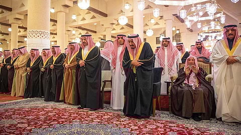 The Custodian of the Two Holy Mosques King Salman binAbdulaziz Al Saud performed funeral prayers for the late Prince Bandar binMohammed bin Abdurrahman bin Faisal Al Saud at Imam Turki bin Abdullah Mosquein Riyadh after Asr prayers today.