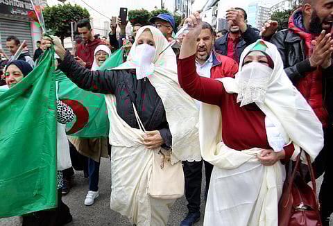 "No vote with thegang!" protesters chanted, angered by interim president AbdelkaderBensalah's announcement on Sunday that an election would be held on December12.