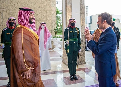 Crown Prince Muhammad Bin Salman received French President Emmanuel Macron on Saturday at Al-Salam Palace in Jeddah.