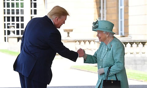 Trump and his wife, Melania, were greeted by the 93-year-oldmonarch at Buckingham Palace at the start of a three-day state visit which seeshim feted with the full force of royal ceremony: a formal dinner with thequeen, tea with heir Prince Charles, and a tour of Westminster Abbey,coronation church of English monarchs for 1,000 years.
