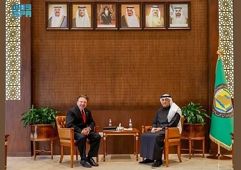 Gulf Cooperation Council (GCC) Secretary General Jasem Mohammed Albudaiwi held a meeting today with National US-Arab Chamber of Commerce CEO David Hamod to discuss potential avenues of cooperation, strengthen trade and economic relations, and explore investment opportunities between the GCC countries and the United States, with the aim of achieving common goals.