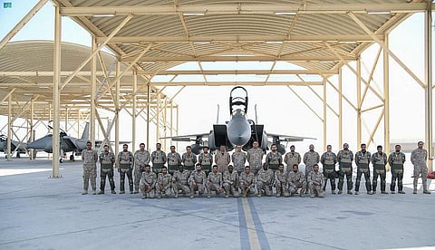Upon arrival at Al Dhafra Air Base, the SRAF group participating in the exercise was received by the Military Attaché at the Kingdom of Saudi Arabia's Embassy in Abu Dhabi Brig. Gen. Abdullah Mohammed Al-Hassan; Group Captain Ayedh bin Saeed Al-Qahtani, the Commander of SRAF group participating in the drill and senior officers.