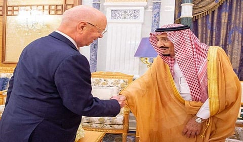 King Salman bin Abdul-Aziz received on Wednesday the CEO and founder of the World Economic Forum (WEF), Professor Klaus Schwab.