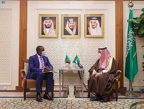 Prince Faisal bin Farhan bin Abdullah, Minister of Foreign Affairs, received the message conveyed to him by the Minister of Foreign Affairs and International Cooperation of the Republic of Zambia Stanley Kakubo during a meeting held here today.