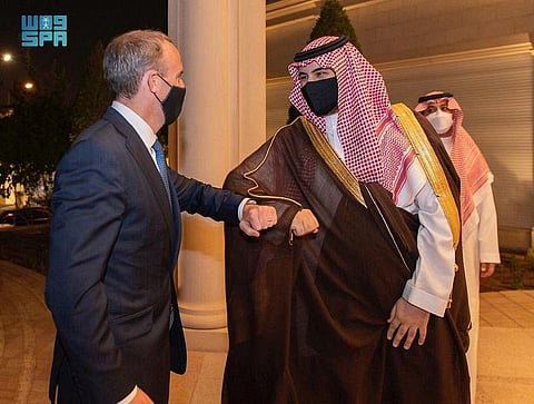 Commenting on his meeting with Raab, Prince Khalid tweeted, saying: "Met with H.E the UK Foreign Secretary @DominicRaab to review the strategic partnership between our two countries and our common vision for strengthening regional security and stability, addressing mutual challenges, and peace efforts in Yemen in light of the Saudi initiative."