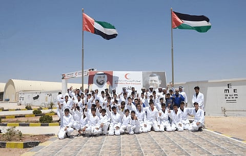 Saudi Arabia's King Salman Humanitarian Aid and Relief Center (KSrelief) continued distributing school bags and stationery items over Syrian students in refugee camps in the Jordanian capital Amman, where the number of beneficiaries reached 1,152.