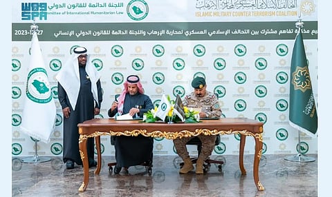 Secretary General of the Islamic Military Counter-Terrorism Coalition (IMCTC) Major General Mohammed bin Saeed Al-Moghedi and President of the Saudi Red Crescent Authority (RCA) and President of the Permanent Committee of International Humanitarian Law Dr. Jalal bin Mohammed Al-Owaisi have signed a memorandum of understanding (MoU) for fostering cooperation between the IMCTC and various Arab, Islamic and international organizations and centers.