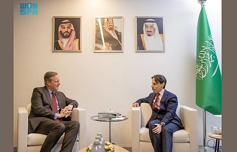 Foreign Minister Prince Faisal bin Farhan bin Abdullah met today with British Secretary of State for Foreign, Commonwealth and Development Affairs David Cameron in Davos, Switzerland.