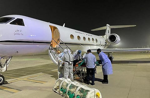 The medical air evacuation plane also arrived at King Salman Air Force Base in Riyadh after a 15-hour flight; with all the precautionary measures taken to combat the spread of the virus.