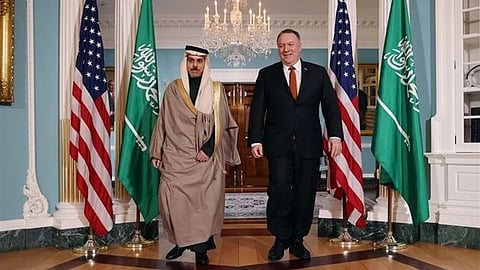 Upon arrival in the UnitedStates of America on an official visit, Prince Faisal bin Farhan binAbdullah, Minister of Foreign Affairs of the Kingdom of Saudi Arabia, heldtalks with U.S. Secretary of State Mike Pompeo at the state departmentin Washington today.