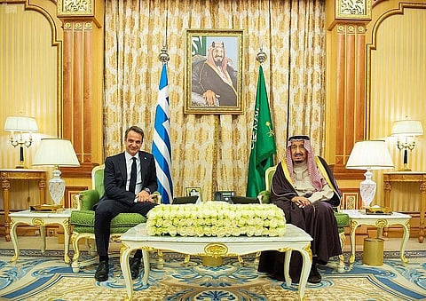 Saudi King Salman bin Abdulaziz Al Saud held in Riyadh yesterday an official talks session with Greek Prime Minister Kyriakos Mitsotakis.