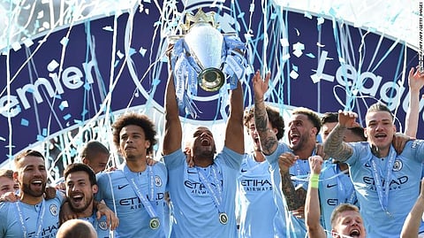 Manchester City retained theEnglish Premier League title after a fierce competition with Liverpool untilthe last 38th stage of the season, beating Brighton 4-1.