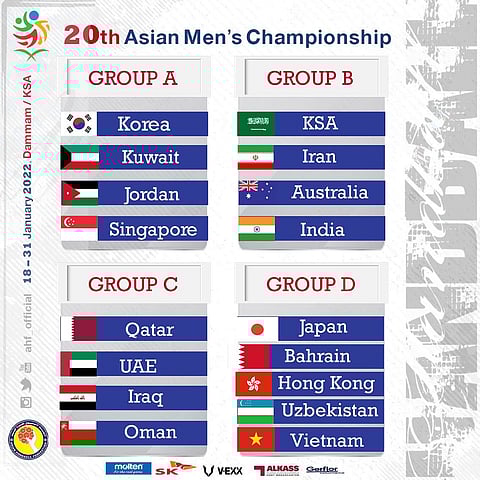 The continental tournament qualifies for the 2023 World Championships that will take place in Poland and Sweden from January 18-31, according to a draw that was held on Monday in the Eastern Region, Saudi Arabia.